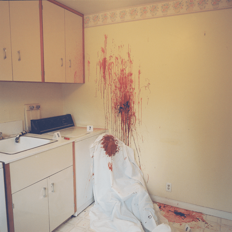 テレサの遺体のそばで8インチの牛刀が見つかった。FBIの臨床病理医グレース・ピトック博士は、「犯人は非常に強い力を使ったため、刃が柄から外れていた」と述べた。 叔父がローカル10ニュースのレポーター、ケン・ランドリューに語ったところによると、一家は死後4日経ってから発見された。ダイニングルームのテーブルの上に、包装途中のプレゼントが置かれていたことから、ホーン一家はメアリーの誕生日の準備をしていたようだ。 ホーン夫妻はホルブルック・ドライブの家に12年間住んでいた。隣人たちは2人のことを熱く語ってくれた。カーティスはティーボールのコーチをし、テレサは聖アガサで手作り菓子を売るバザーの担当をしていた。2人の娘たちはティリカム小学校の人気者だった。ロングレッグスの他の被害者たちと同じように、彼らも模範的な市民だった。 ホーン一家は、バルタザール・ソーン神父の司式により、聖アガサ・カトリック教会に埋葬された。葬儀はグリーンゲーツ&ヤング葬儀社によって手配された。 いつものように、犯行現場からピンクの暗号手紙が発見され、ロングレッグスの署名があった。